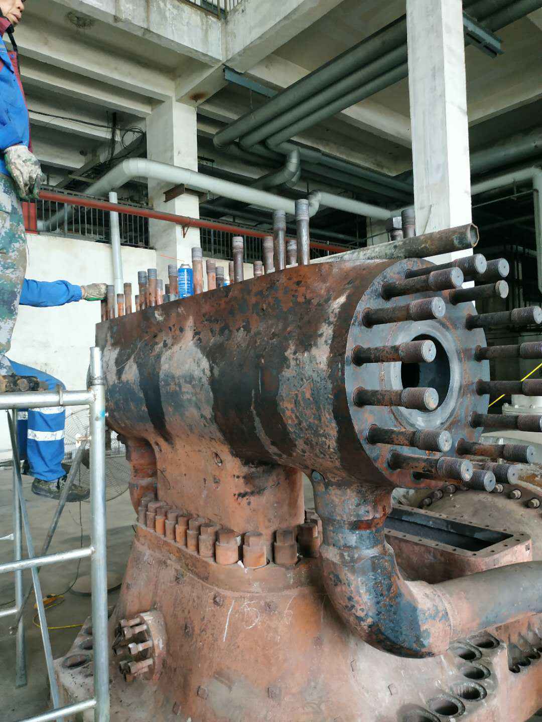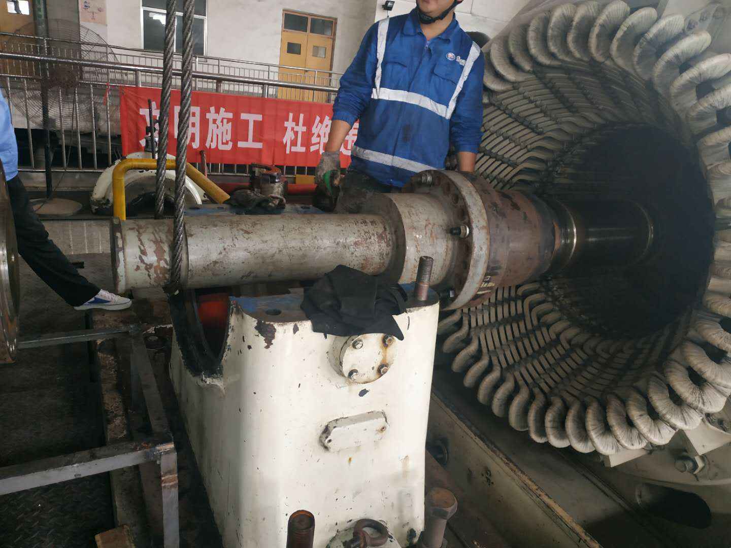 由米兰app体育登录入口-米兰体育(中国)承建的山东海能化学有限责任公司机组B15MW背压式汽轮机组(原 C25抽汽凝汽式机组)大修工程现已完成凝结水泵、油站检修工作,发电机前后轴承座基础垫铁研磨工作,目前蒸汽室螺栓的拆卸工作及发电机定子与转子的清理工作陆续启动,下气缸吊隔板工作也在稳步进行中。